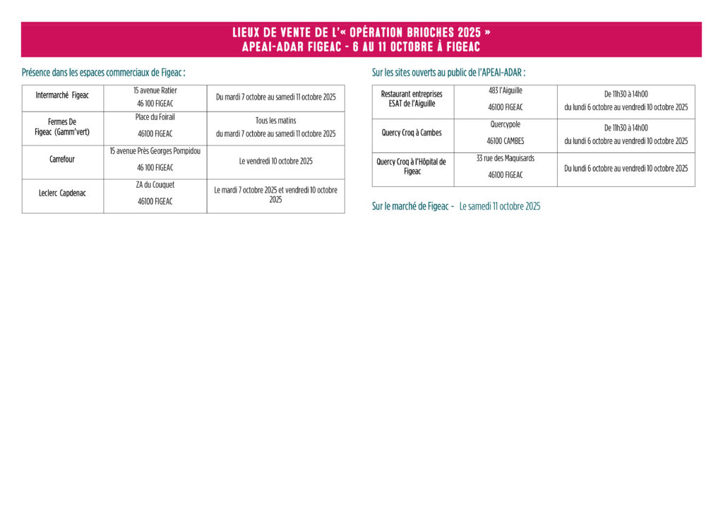 - 04 Août 2025Opération Brioches – 6 au 12 octobre 2025