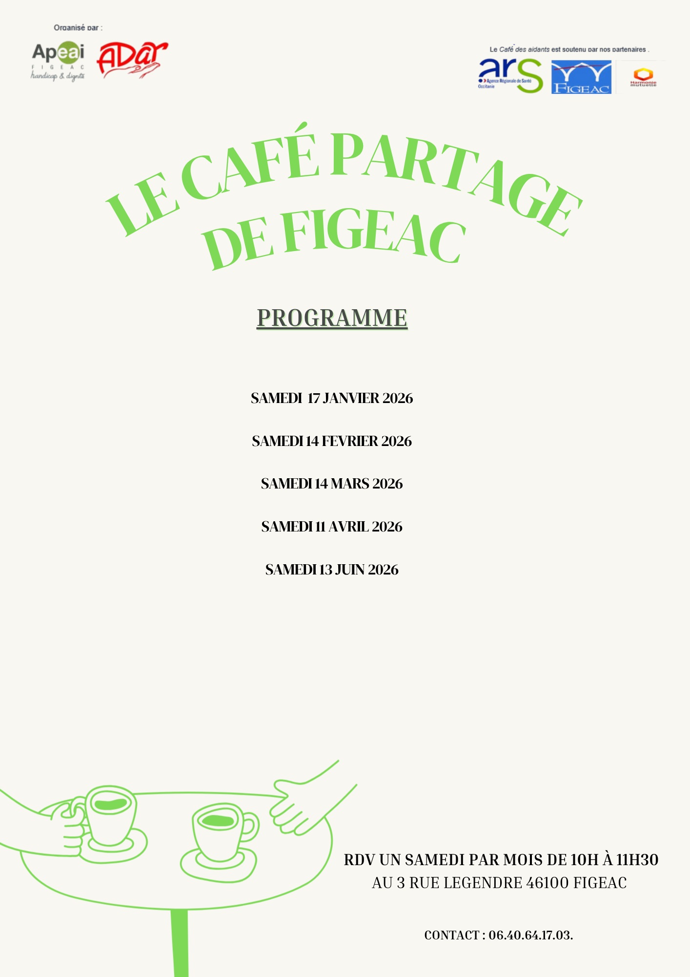 Le Café Partage est un lieu de rencontre entre aidants qui a pour mission de vivre au mieux sa situation d’aidant au quotidien, d’apporter sa propre expérience et de partager les témoignages d’autres aidants et d’essayer de trouver des réponses aux problèmes spécifiques rencontrés.