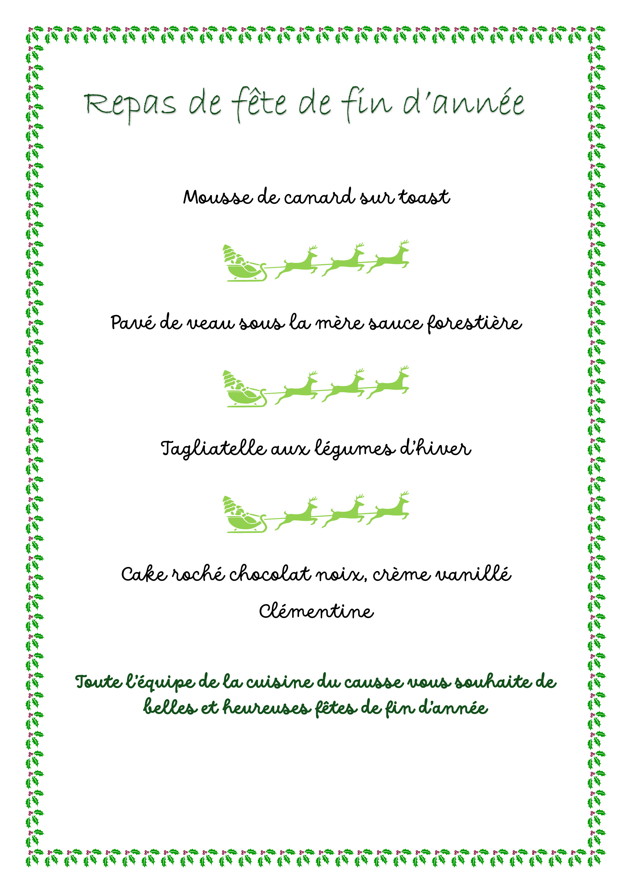 Menu du REPAS DE NOEL du 18 décembre 2025